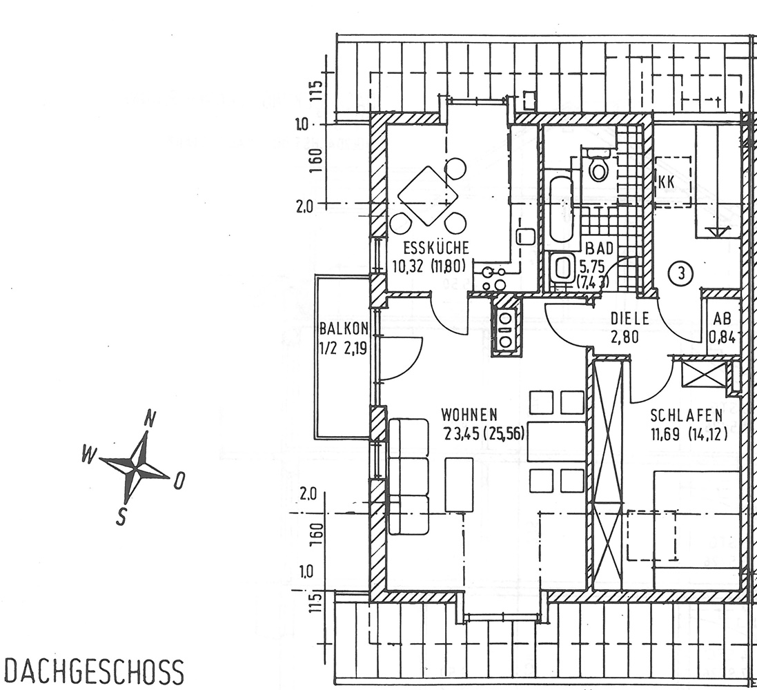 Die 2-Zimmerwohnung befindet sich im Dachgeschoss und verspricht großzügiges und lichtdurchflutetes Wohnen. Eingeteilt in Diele, Küche/Essen, Bad/Dusche/WC, Schlafzimmer und einem Wohnraum, Balkon ca. 4,5 m2, mit herrlichem Weitblick, Orientierung Süd-West.