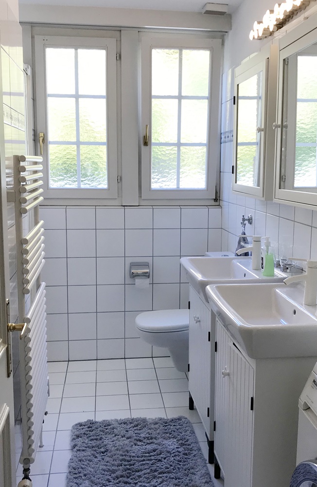 Handtuchheizung, Waschmaschinenanschluss, WC.