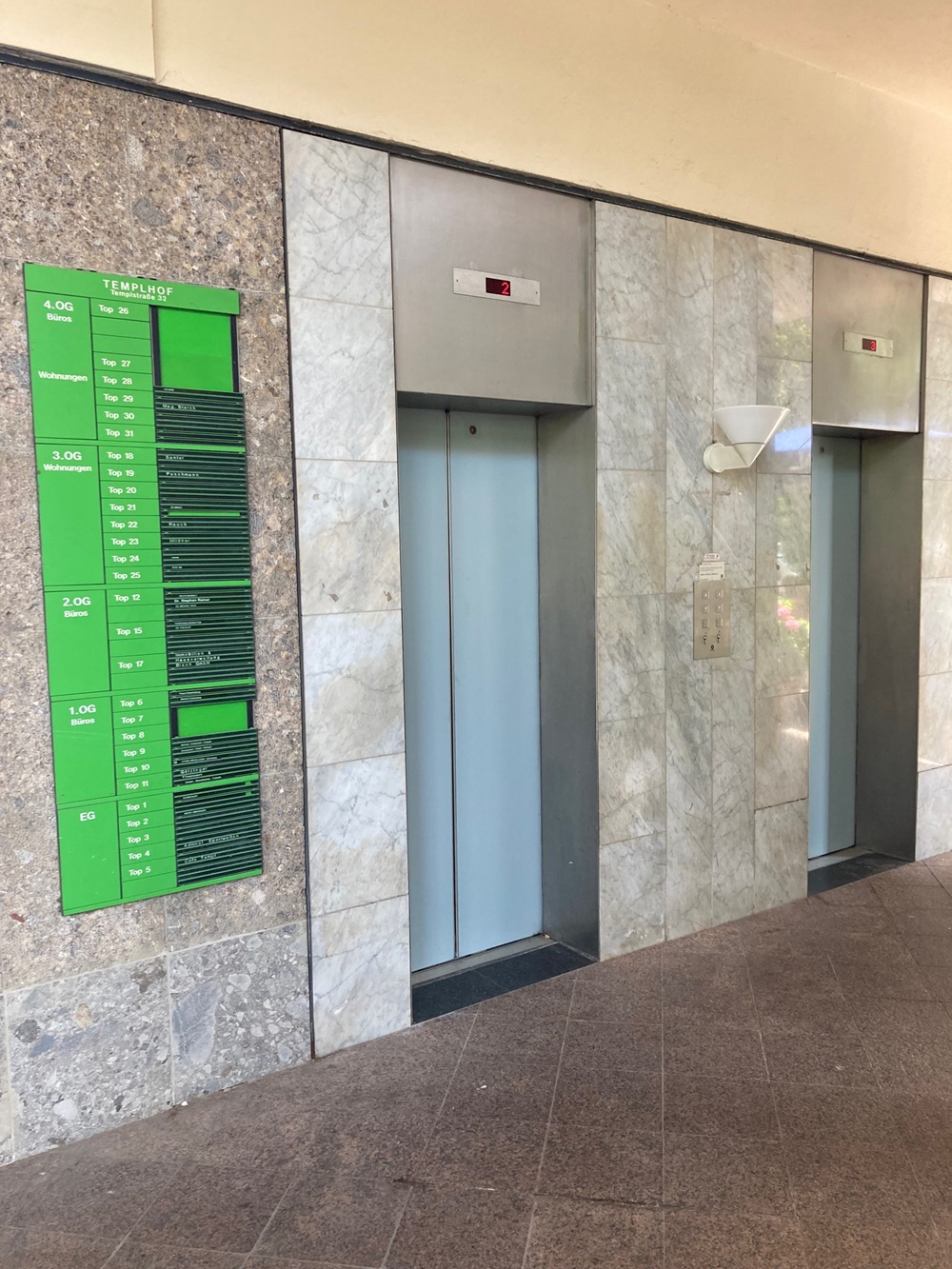 mit 2 Ebenen, die einzelnen Geschosse sind durch ein offenes Stiegenhaus und zwei Personenlifte im Innenhof erschlossen.
