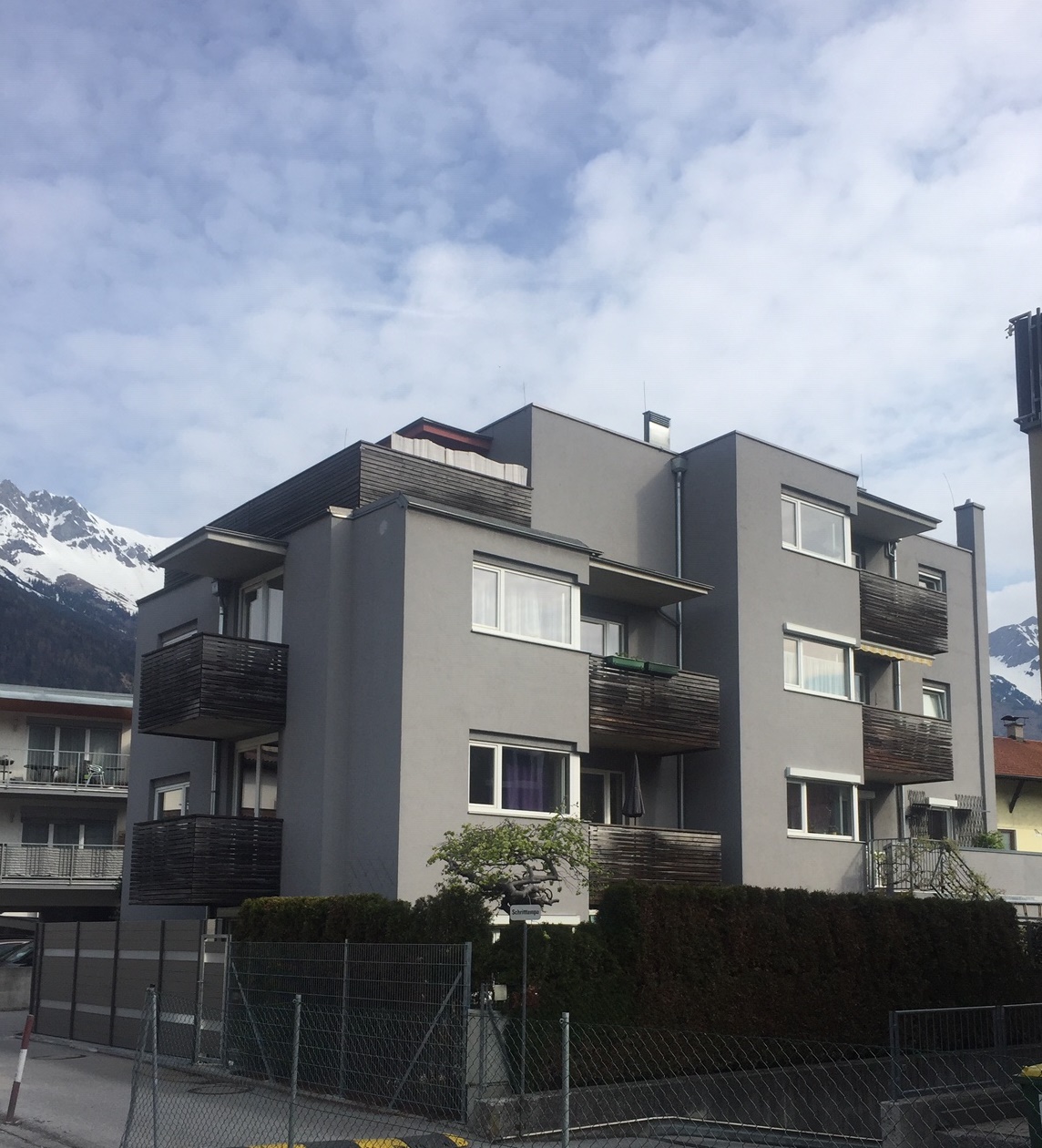 Das lichtdurchflutete exclusive Wohnhaus wurde 1997 errichtet, es entstanden 12 Einheiten 1-, 2-, 3-, und 4-Zimmerwohnungen, Panoramalift, Tiefgarage. Architektur, die dem Individuum im täglichen Leben viel Freiraum bietet. Das Raumkontinuum im Inneren ist offen und doch behutsam gegliedert, innen wie außen ist man Teil einer in sich stimmigen Architektur. Der Ortsteil Hötting verfügt über sämtliche Infrastruktur des täglichen Lebens, der Freizeitwert ist überdurchschnittlich.