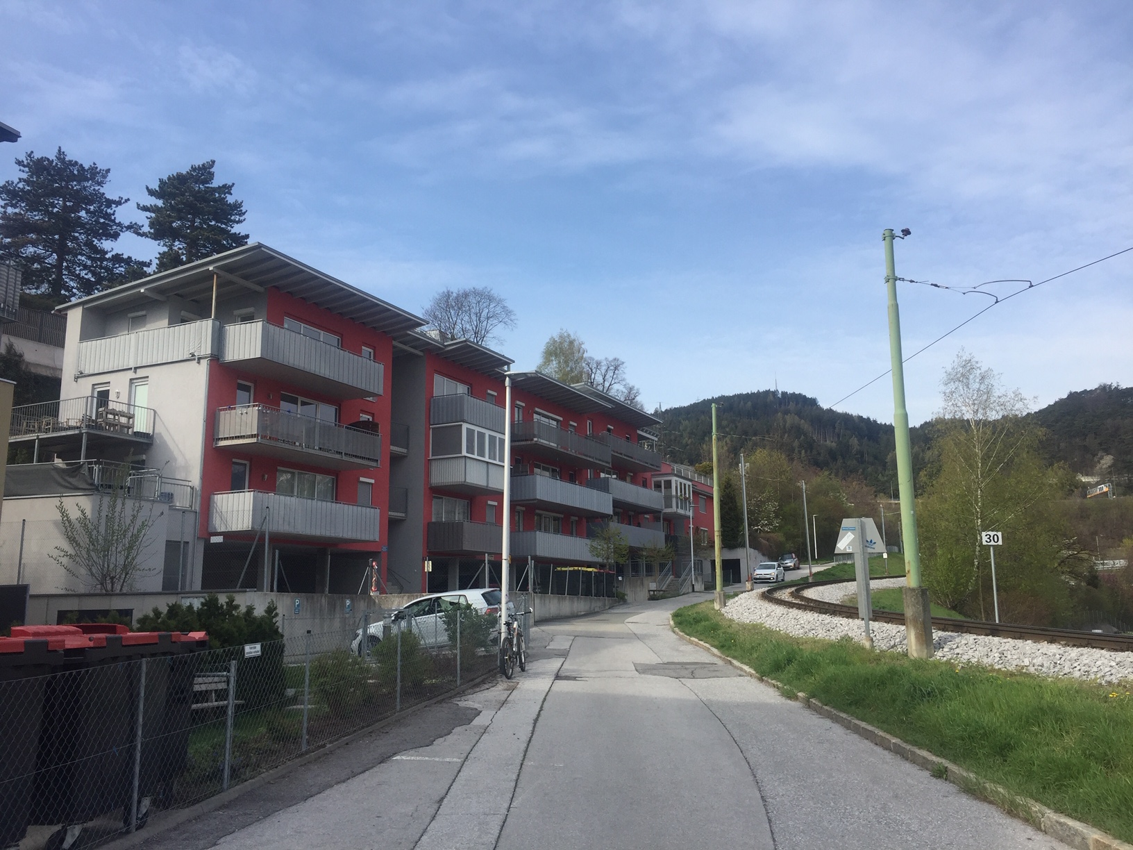 Direkt im Zentrum von Absam, an einem leicht nach Süden geneigten Hang von der Dörferstraße etwas zurückgesetzt, errichtete die Firma Mayereder zwei Wohnhäuser mit je 5 Wohnungen sowie einer eingeschossigen Tiefgarage.